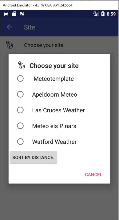 • Allows the user to select the site they want to see (sorting the sites by name or by distance to the user's current location)